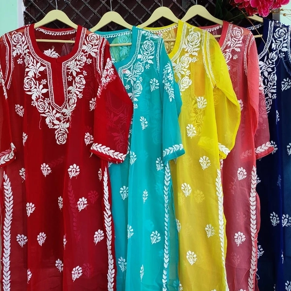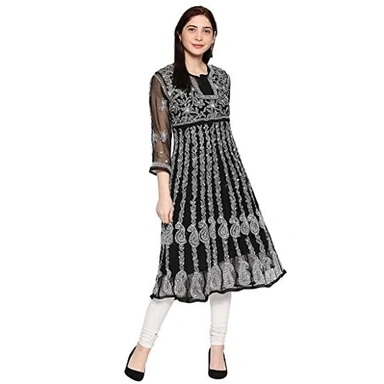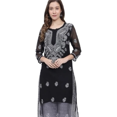 Women's Chikankari Handwork Kurti With Inner (Royal Blue) - Dark Blue, M